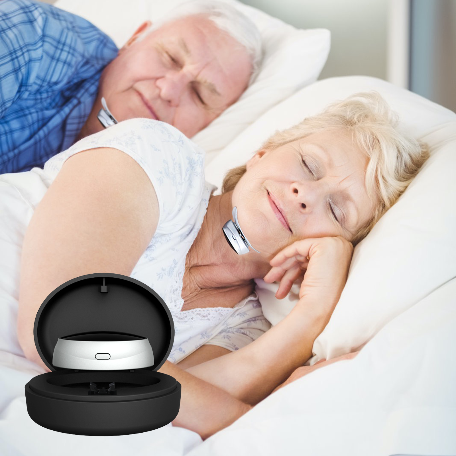 Snoring is often caused by relaxed airway muscles. The Mivrass SilentSleep Device uses smart massage technology to provide a precise dual-pulse stimulation, effectively tightening muscles to open your airway. This ensures it remains clear all night, allowing you to sleep soundly and peacefully.